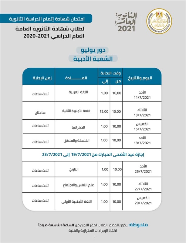 جدول امتحان الثانوية العامة 2021 سوريا / مصر : جدول الثانوية العامة 2021 للشعبة العلمية يبدأ اليوم ... / جدول برنامج امتحانات الثانوية العامة التوجيهي التكميلي 2020 في الأردن الدورة التكميلية بما وقالت وزارة التربية في تصريح صحفي إن امتحان التوجيهي التكميلي الأول يكون يوم الخميس الحادي والثلاثين من شهر ديسمبر القادم، فيما الأخير بتاريخ 16 يناير 2021.